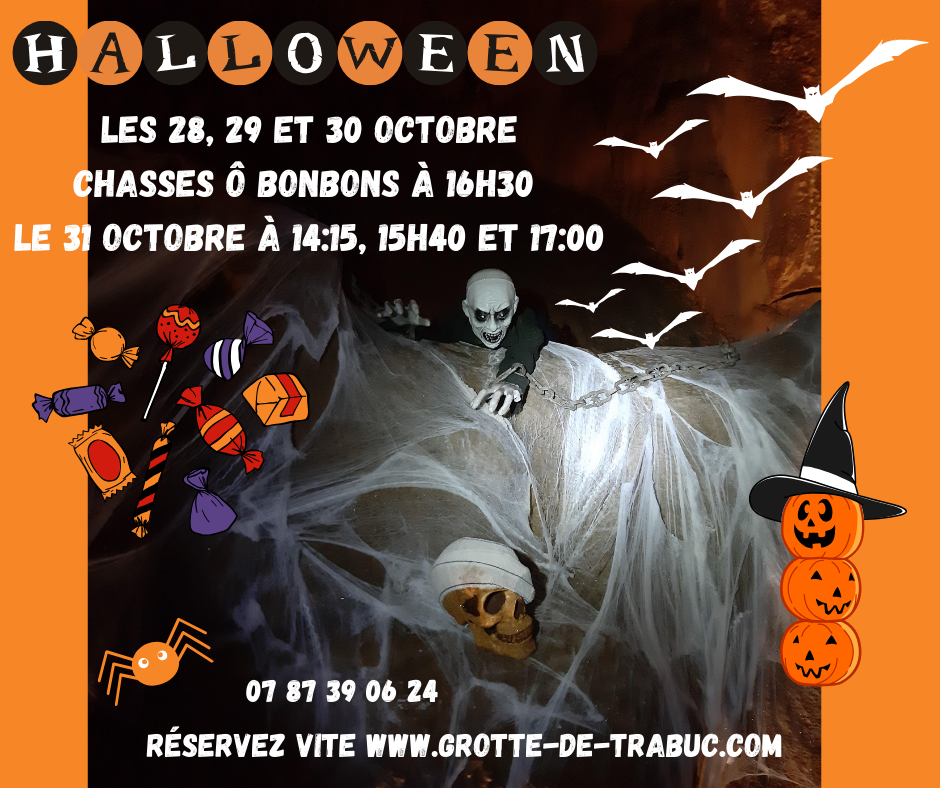 Le 31 octobre, la grotte vibrera au rythme d’Halloween, avec trois grandes chasses aux bonbons programmées à 14h15, 15h40 et 17h00.
